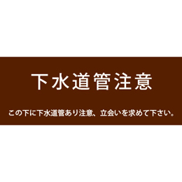 ・表示:下水道管注意 この下に水道管あり注意、立会いを求めて下さい。