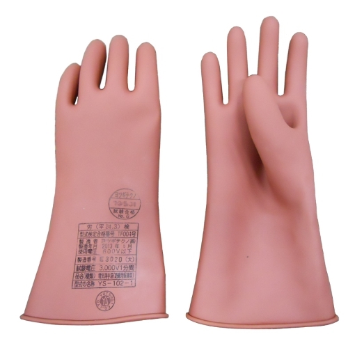 低圧作業用電気絶縁ゴム手袋は、低圧電気回路での活線作業、活線近接作業時に、作業者を感電などの危険から守るために使用されています。
