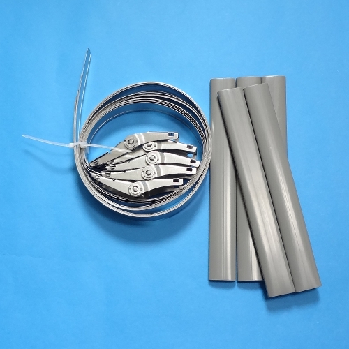 締付金具付ステンレスバンドと、保護チューブのセットです。
