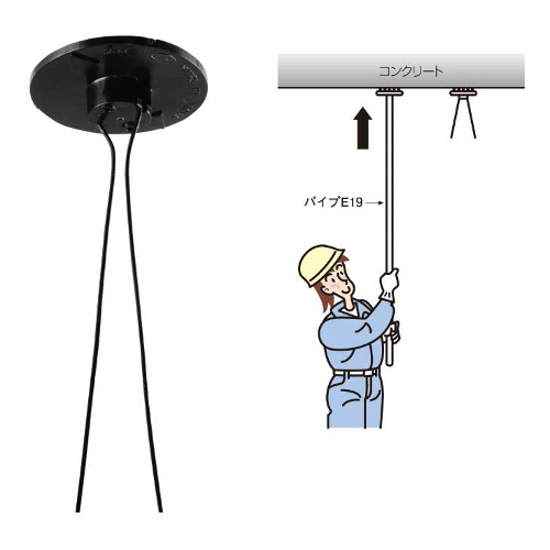 天井面への取付が脚立無しで行え、楽に施工ができます。