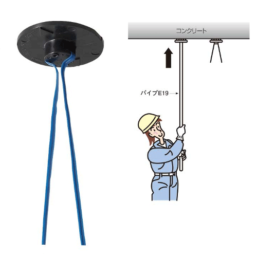 天井面への取付が脚立無し、つまり脚立の上り下りが必要なく楽に施工ができます。