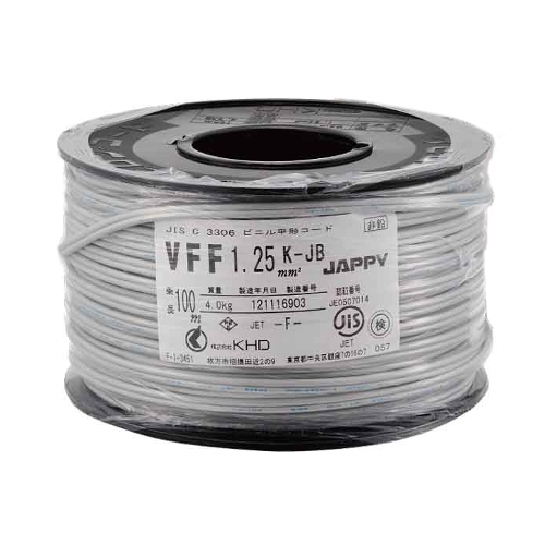 JAPPY ビニル平型コード VFF1.25SQ 100m ボビン巻 (KHD) 灰