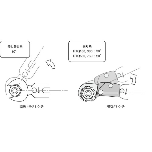 ラチェット戻り機能で狭所作業も楽々(戻り角20~30°)