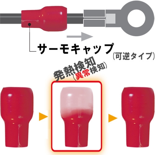 ◎電気機器の圧着端子絶縁キャップを使用する代わりに、発熱監視可能なサーモキャップを使用するだけ