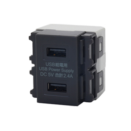 品番 USB-R3701DG-JP 仕様 USBコンセント×2口 定格入力 100V 0.5A / 50-60Hz 定格出力 DC5.0V 2.4A USBポート Aタイプコネクタ 2口