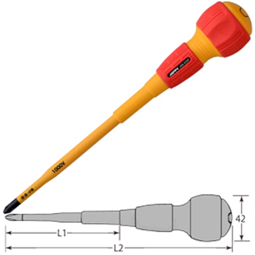 耐電圧1000V。活線作業に必須の絶縁ドライバーです。
