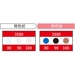 は、80℃になると青、90℃になると黒、100℃になると茶。3段階で発色するタイプです。