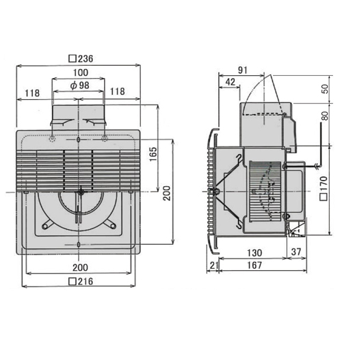 ・埋込寸法:□180mm