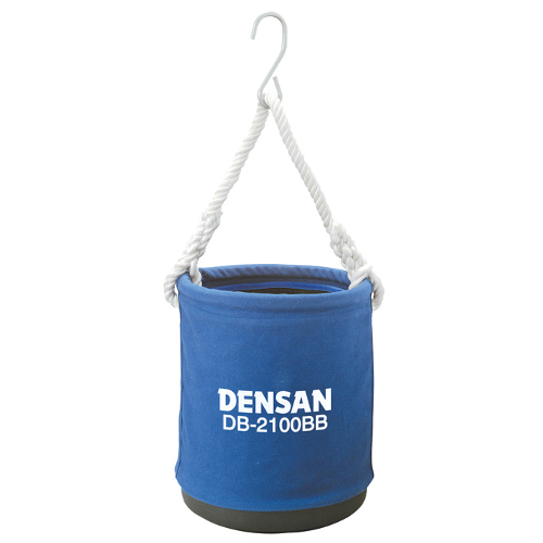 厚手の帆布を使用した丈夫な、現場での使用に耐える、自立タイプの電工バケツです。