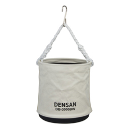 厚手の帆布を使用した丈夫な、現場での使用に耐える、自立タイプの電工バケツです。