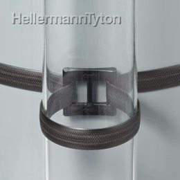 電柱と電線、電線管、モールなどの間に挟み、エンドレスタイで配線固定し、隙間を無くして確実に固定出来ます。